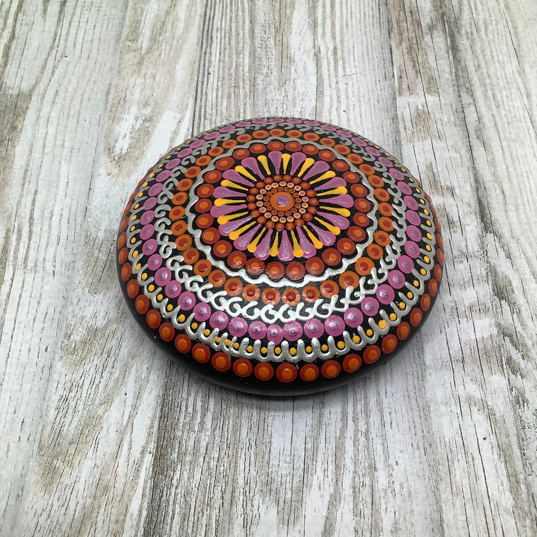 Thank you for checking out this beautiful mandala rock I hand-painted!